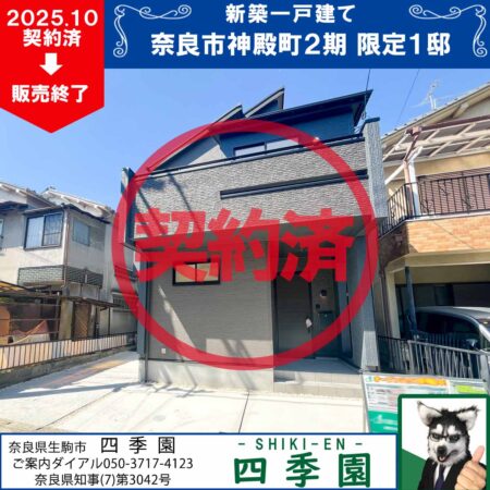 販売終了/奈良市神殿町、長期優良住宅!耐震3(最高等級)の新築一戸建て!奈良市郊外にある駐車2台の長期優良住宅!耐震3(最高等級)の新築一戸建て!人工大理石の洗面やセパレート出来る主寝室等素敵がたくさんの新築一戸建て!