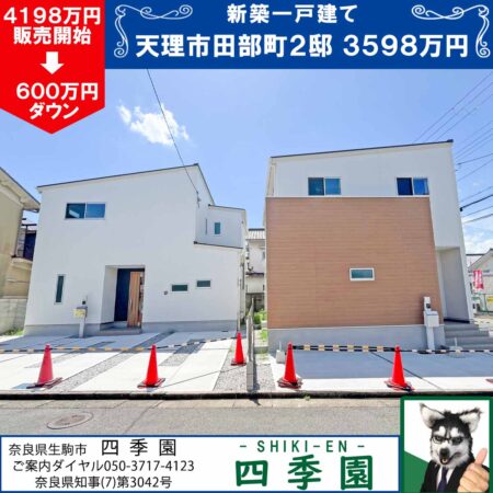 天理市田部町2邸、天理駅から徒歩4分!見せ張り天井お洒落なリビングの新築一戸建天理駅から徒歩4分なのに駐車3~4台OK!見せ張り天井お洒落なリビングの新築一戸建!