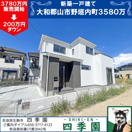 大和郡山市野垣内町、JR郡山駅へ徒歩5分!長期優良住宅で耐震3(最高等級)の新築一戸建てJR郡山駅へ徒歩5分!大型車OKの駐車2台!全室南向きで日当たり良好な長期優良住宅!家は耐震3(最高等級)の地震に強い家!