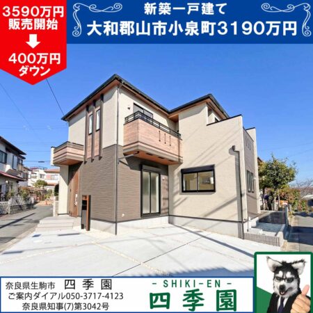 大和郡山市小泉町、日当たり良好な長期優良住宅!耐震3(最高等級)の地震に強い家!南西向きで日当たり良好な長期優良住宅!駐車3台可能な耐震3(最高等級)の地震に強い家!室内もお洒落で必見!