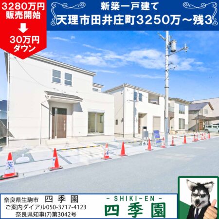 天理市田部町!全20邸の新築ばかりの街並み!長期優良住宅で耐震3(最高等級)の地震に強い家!全20邸の新築ばかりの街並み!長期優良住宅で耐震3(最高等級)の新築一戸建て!先行建築の8邸、お気に入りの間取りはお早目に!
