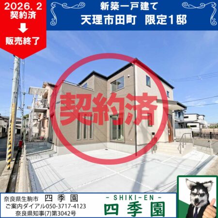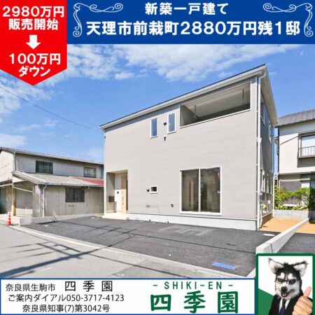 天理市前栽町第4、南向きで日当たり良好な新築一戸建て!耐震3(最高等級)の地震に強い家!天理駅へ徒歩11分!南向きで日当たり良好な新築一戸建て!駐車3台可能で耐震3(最高等級)の地震に強い家!