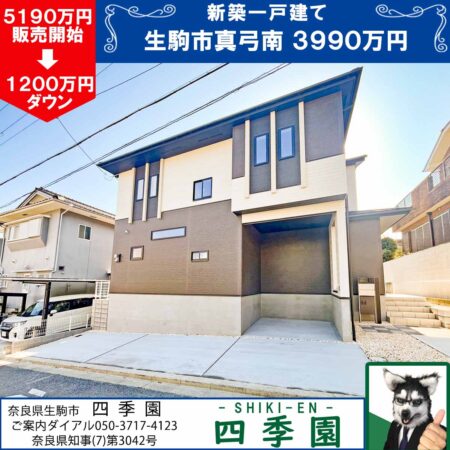 生駒市真弓南2丁目、閑静な住宅街の長期優良住宅!耐震3(最高等級)の地震に強い家!閑静な住宅街「真弓南」にある庭付きタイルデッキのある長期優良住宅!耐震(最高等級)の地震に強い家!