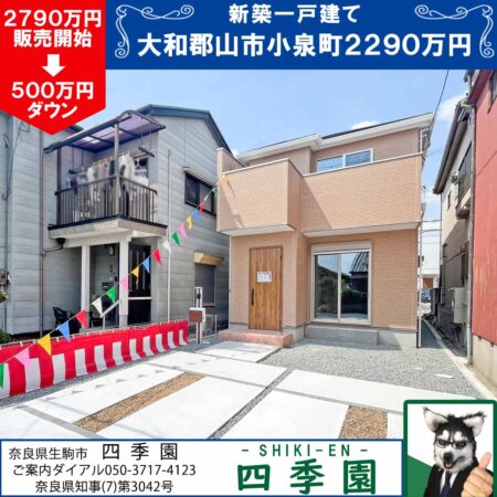 大和郡山市小泉町第22、駅徒歩8分の省エネ基準適合住宅、新築一戸建て駅徒歩8分の省エネ基準適合住宅、南向きで日当たり良好な駐車2台の新築一戸建て!
