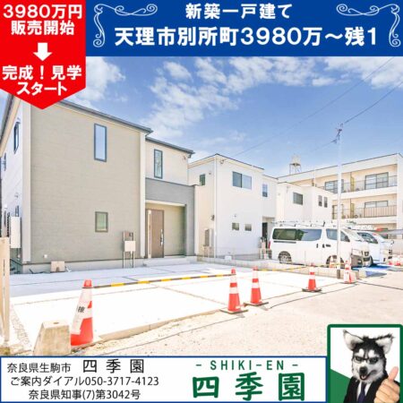 天理市別所町!庭付きの駐車3台!長期優良住宅で耐震3(最高等級)の地震に強い家!天理駅から徒歩12分!南庭付きの大型車OK駐車3台!長期優良住宅で耐震3(最高等級)の新築一戸建て、子育てグリーン住宅支援金対象物件!
