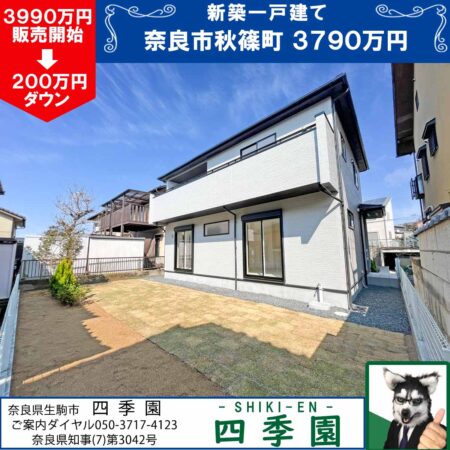 奈良市秋篠町、日当たりの良い庭付き一戸建て!長期優良住宅で耐震3(最高等級)の地震に強い家!日当たりの良い庭付き一戸建て!21帖のひろびろLDKは収納豊富!長期優良住宅で耐震3(最高等級)の地震に強い家!