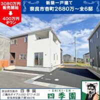 販売終了/奈良市疋田町3丁目、耐震3(最高等級)の新築一戸建て大和西大寺駅エリア!道が狭すぎない平地に南向きで庭付きの一戸建て!建物は耐震3最高等級