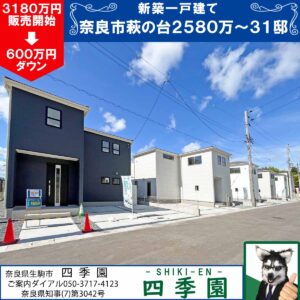 生駒市萩の台4丁目、駅徒歩7分、駐車3台可能な長期優良住宅!耐震3(最高等級)の地震に強い家!生駒市萩の台、駅徒歩7分×耐震等級3×長期優良住宅。将来まで安心が続く住宅街の家