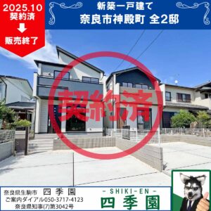 販売終了/奈良市神殿町、長期優良住宅!耐震3(最高等級)の新築一戸建て!奈良市郊外にある駐車2台の長期優良住宅!耐震3(最高等級)の新築一戸建て!人工大理石の洗面やセパレート出来る主寝室等素敵がたくさんの新築一戸建て!