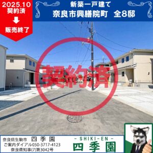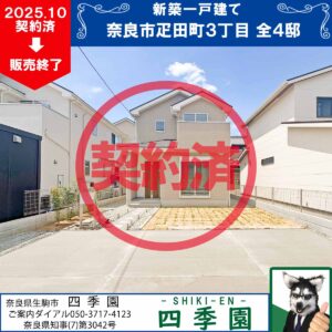 販売終了/奈良市疋田町3丁目、耐震3(最高等級)の新築一戸建て大和西大寺駅エリア!道が狭すぎない平地に南向きで庭付きの一戸建て!建物は耐震3最高等級
