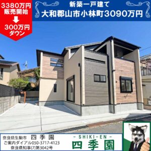大和郡山市植槻町、近鉄郡山駅へ徒歩13分!長期優良住宅の耐震3(最高等級)の新築一戸建て近鉄郡山駅から徒歩13分!長期優良住宅の新築一戸建て!家は耐震3(最高等級)の地震に強い家!子育てグリーン住宅支援金対象!