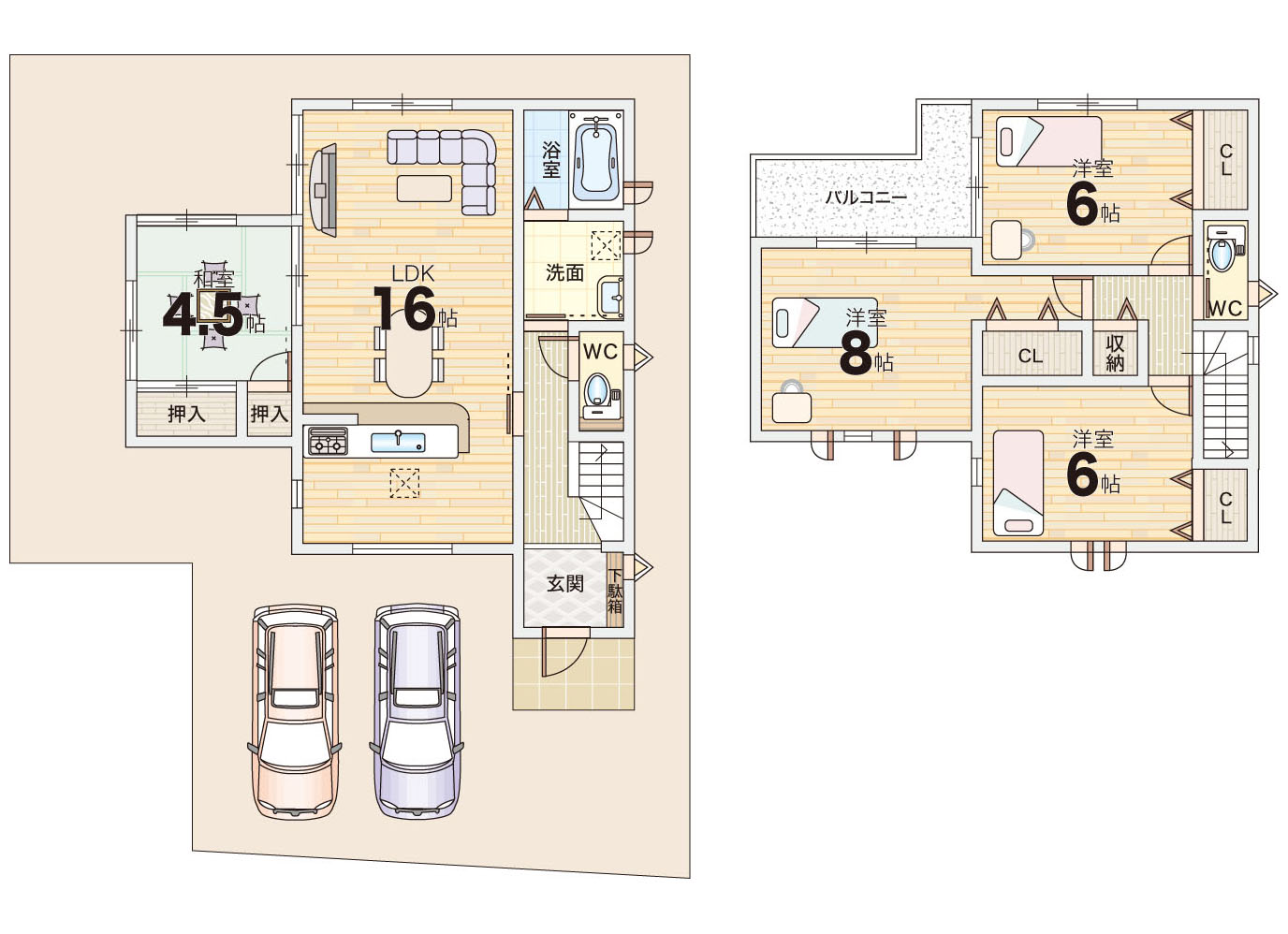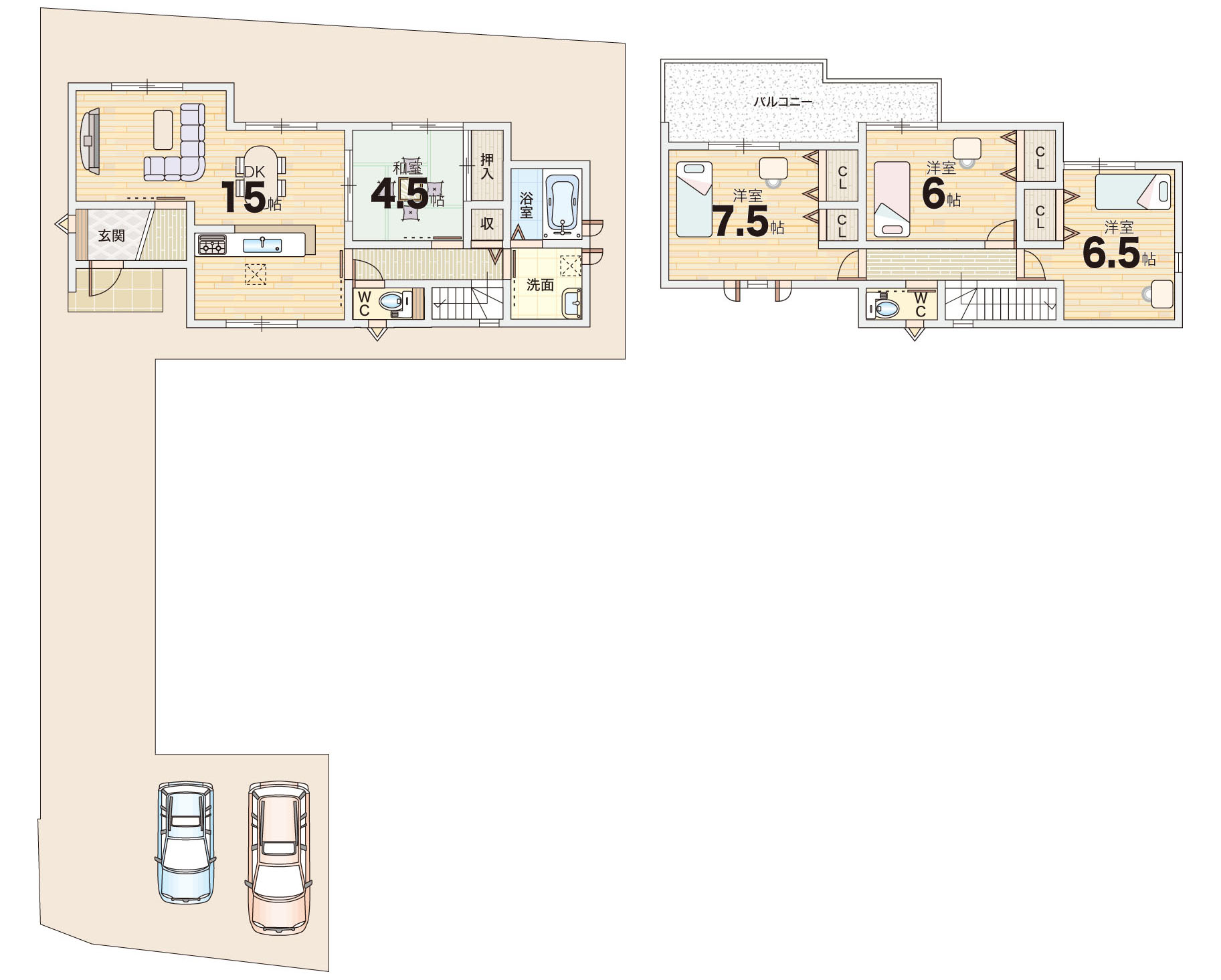 奈良市五条西、近鉄学園前エリアの大型車OK駐車2台!省エネ基準適合住宅の新築一戸建て