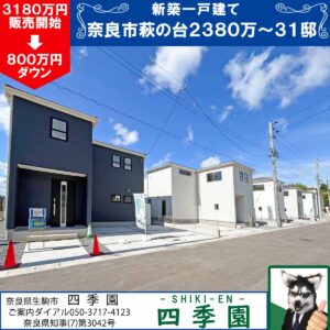 生駒市萩の台、全40邸の新築ばかりの街並み!!耐震3(最高等級)の地震に強い家!