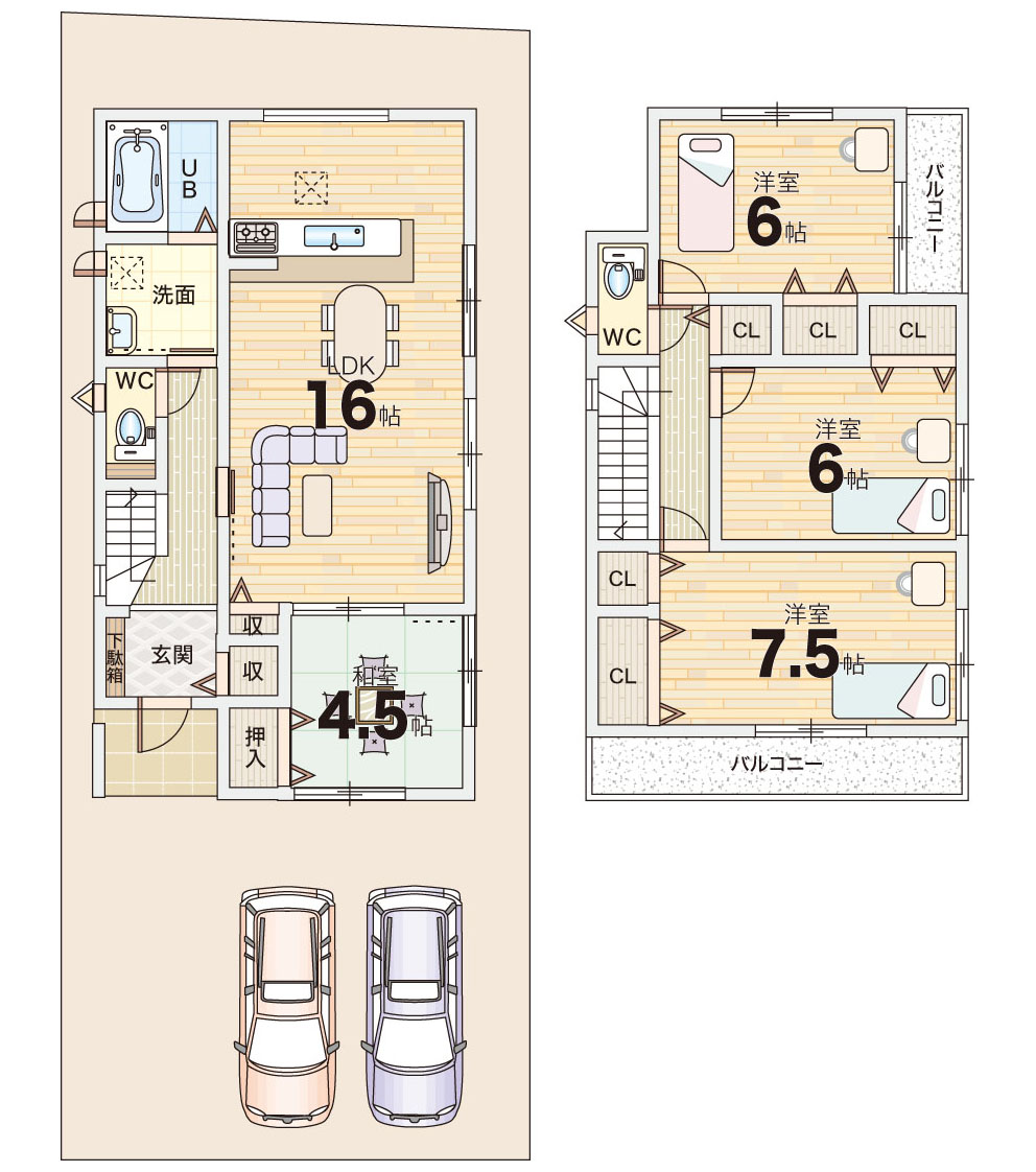 生駒市壱分町、駐車2台の省エネ基準適合住宅は南窓で明るい家!新築一戸建て