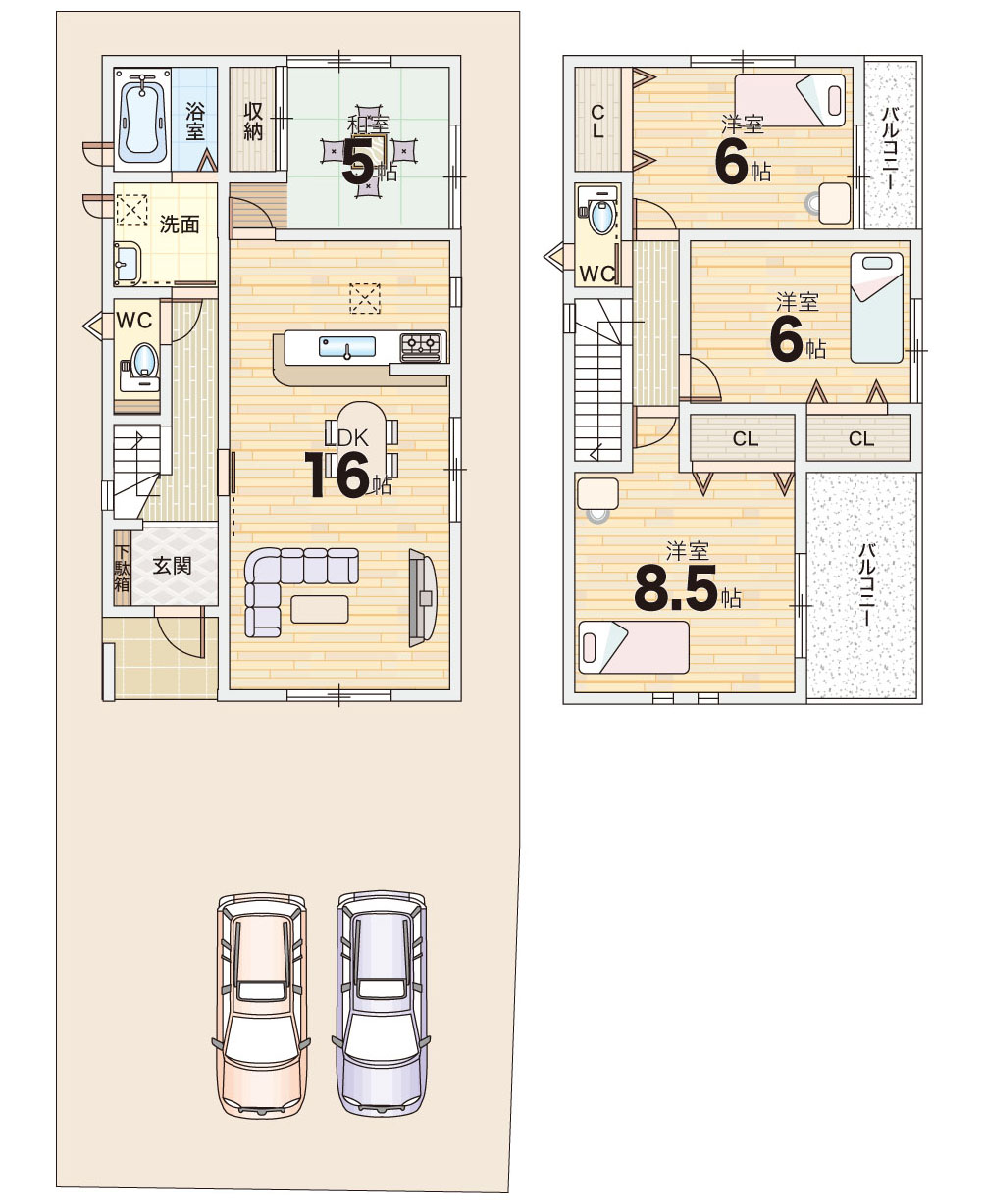 ■木造軸組工法、二階建て