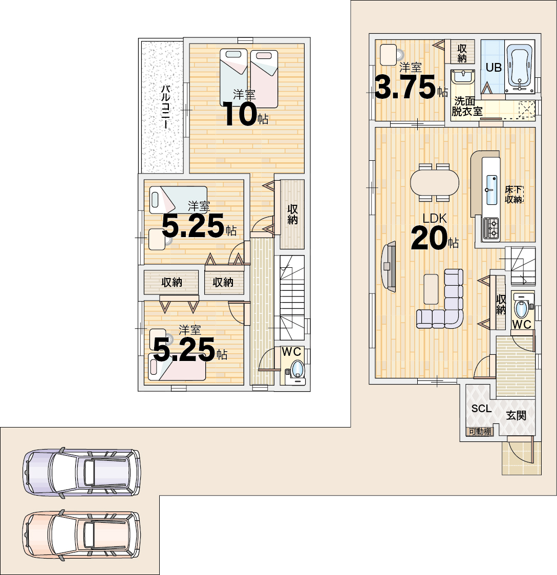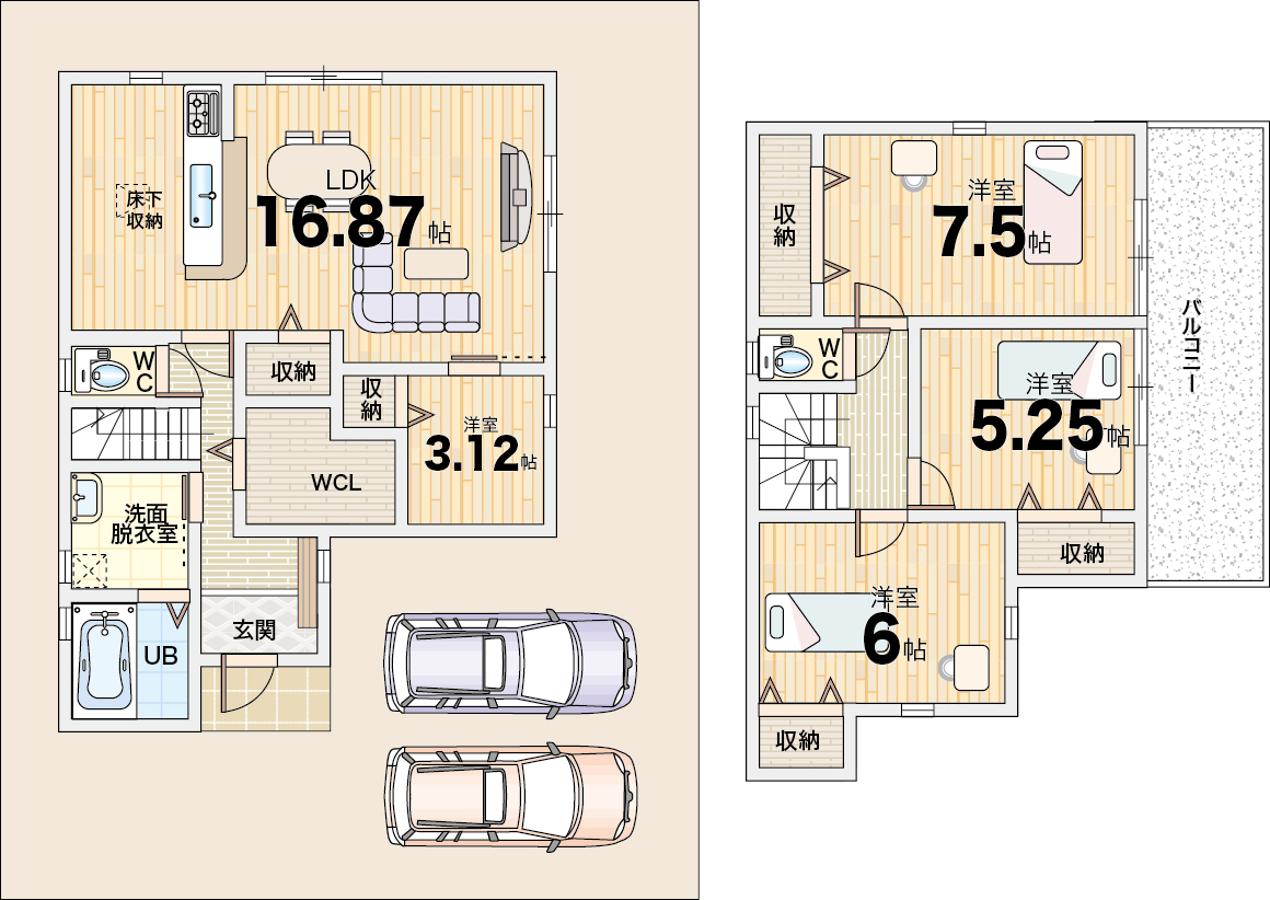 ■木造軸組工法、二階建て