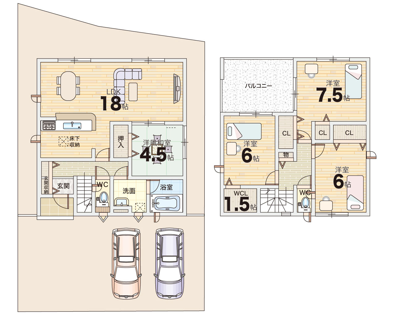 ■木造軸組工法、二階建て