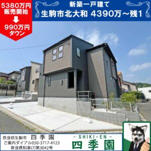 生駒市北大和4丁目、角地で開放感のある長期優良住宅!耐震3(最高等級)の新築一戸建て!