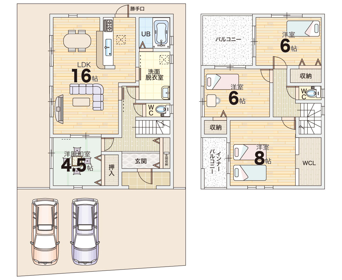 ■日当たり良好な全2邸!並列駐車OK2台!