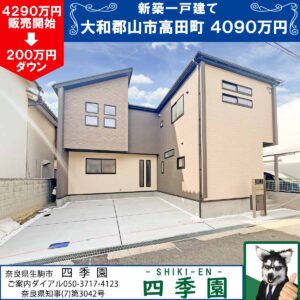 大和郡山市下三橋町!郡山駅から徒歩13分!日当たり良好な長期優良住宅!家は耐震3(最高等級)で家族を守る家!