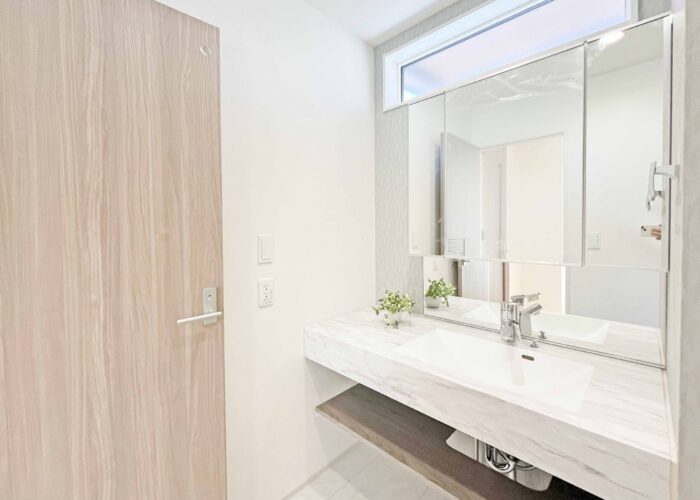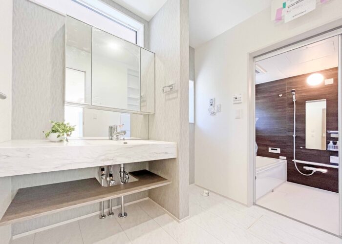 建物は「長期優良住宅・耐震3(最高等級)」となり、補助金や税金控除でも活躍できる物件で性能評価書の付いた性能住宅となります。リビングは「折り上げ天井」キッチンは「折り下げ天井」とお洒落な内観となっています。人工大理石の洗面も人気となっています。現地での印象も良いので是非ご見学下さい。子育てグリーン住宅支援金も対象物件となっています。