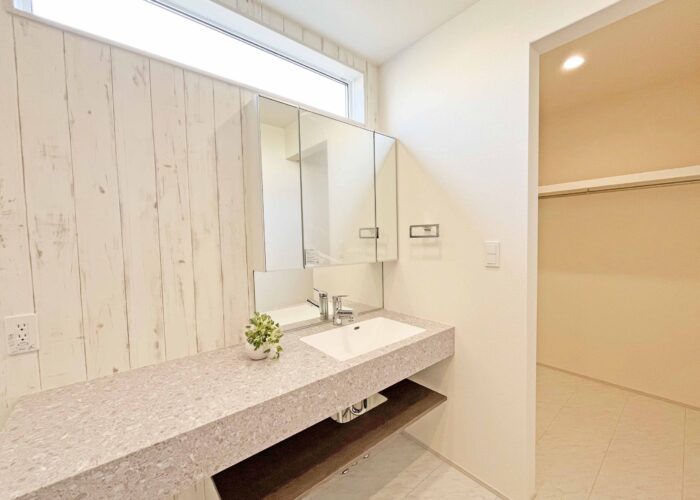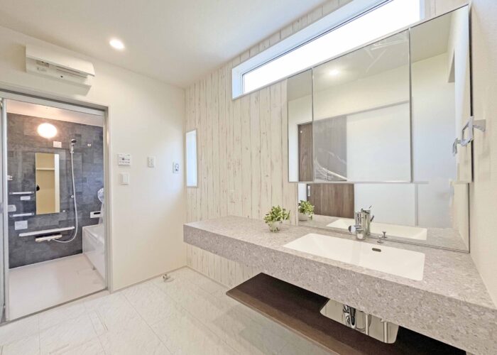 建物は「長期優良住宅・耐震3(最高等級)」となり、補助金や税金控除でも活躍できる物件で性能評価書の付いた性能住宅となります。リビングは「折り上げ天井」キッチンは「折り下げ天井」とお洒落な内観となっています。人工大理石の洗面も人気となっています。現地での印象も良いので是非ご見学下さい。子育てグリーン住宅支援金も対象物件となっています。